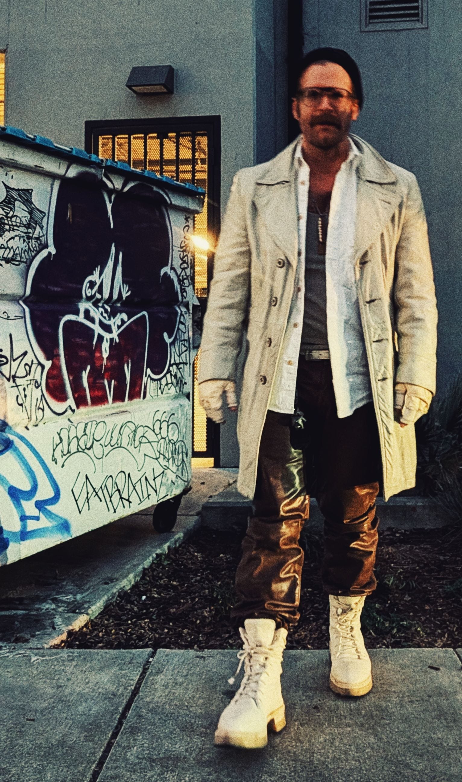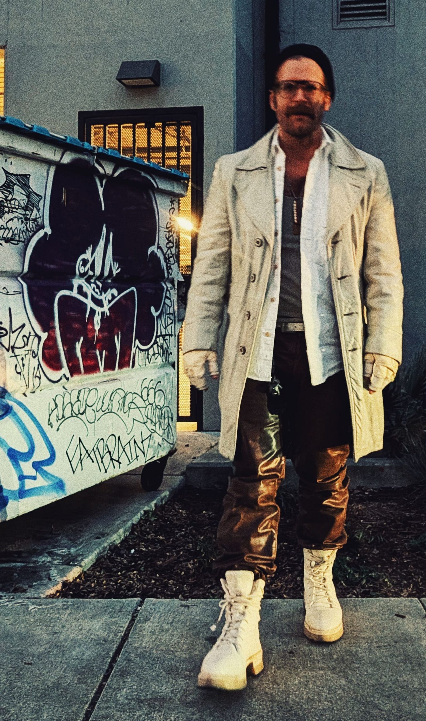 I want to dress in a way that looks slightly psychotic: simultaneously austere but also “fucked,” in the sense of either patina or some sort of formal element that rejects formal menswear harmonies (example from the real world: i never hem my pants and like to tuck them into my boots, which always looks a bit off but carries a sort of expressive capacity that I am quite aesthetically fond of).